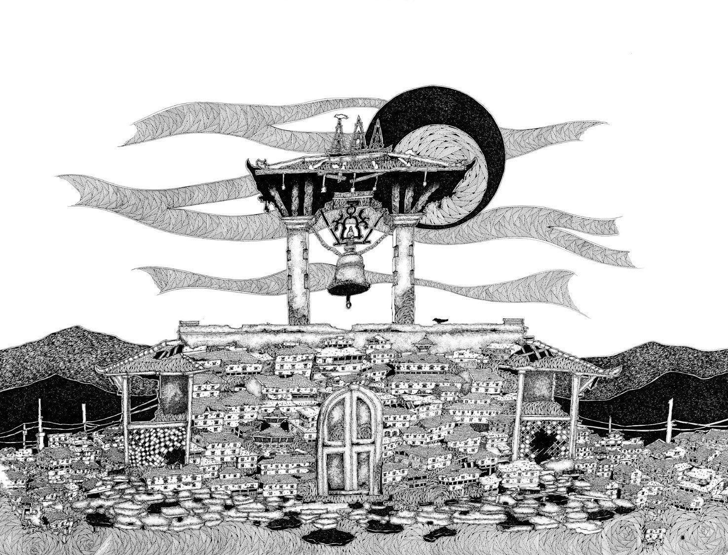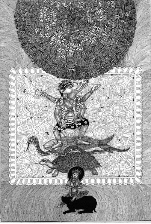 The exhibition features eight artists—Abhishek Shah, Anil Ranjit, Jagdish Upadhyay, Rupesh Man Singh, Sharmila Shrestha, Sujan Dangol, Ashesh Dangol and Jattadhari Bhajan Kala— working on multiple mediums: pen and ink drawings, photographs, video, and rice straw art. Moreover, this exhibition aims to tread beyond the static medium. The opening will feature more dynamic forms like performance art, music, and food.