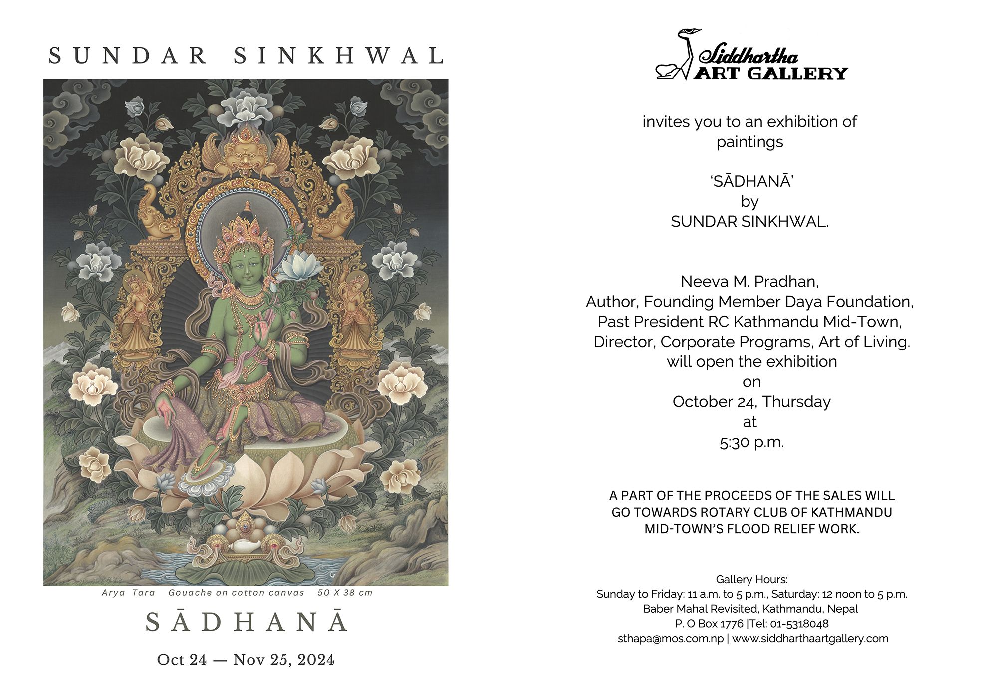 Carrying forward this spirit of giving, a portion of the proceeds from the sale of Sundar Sinkhwal’s exhibition will be donated to the Rotary Club of Kathmandu Midtown’s relief fund.