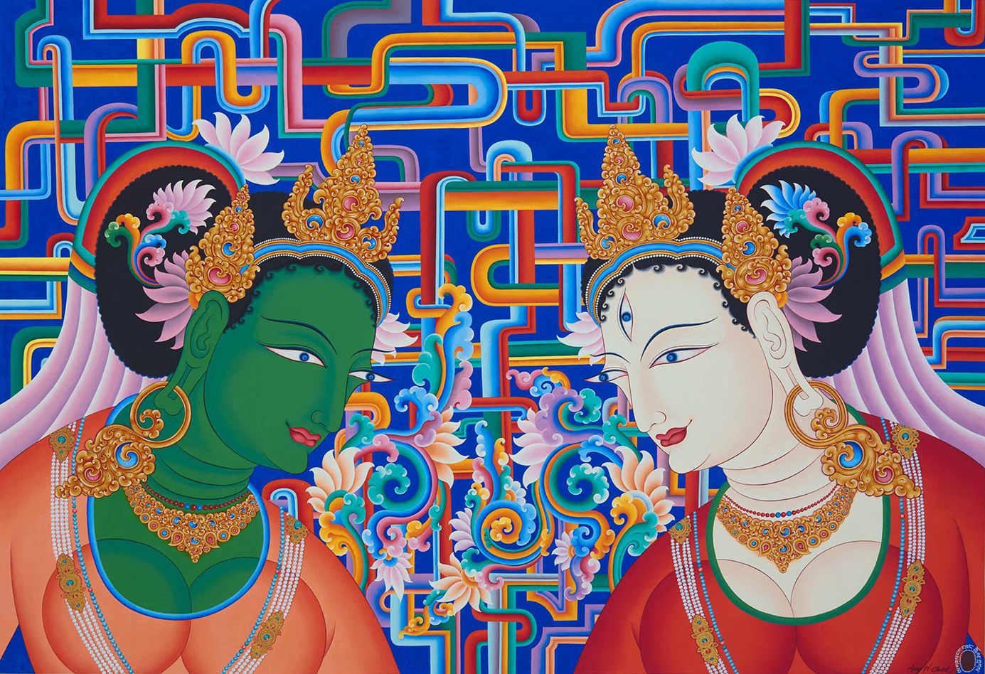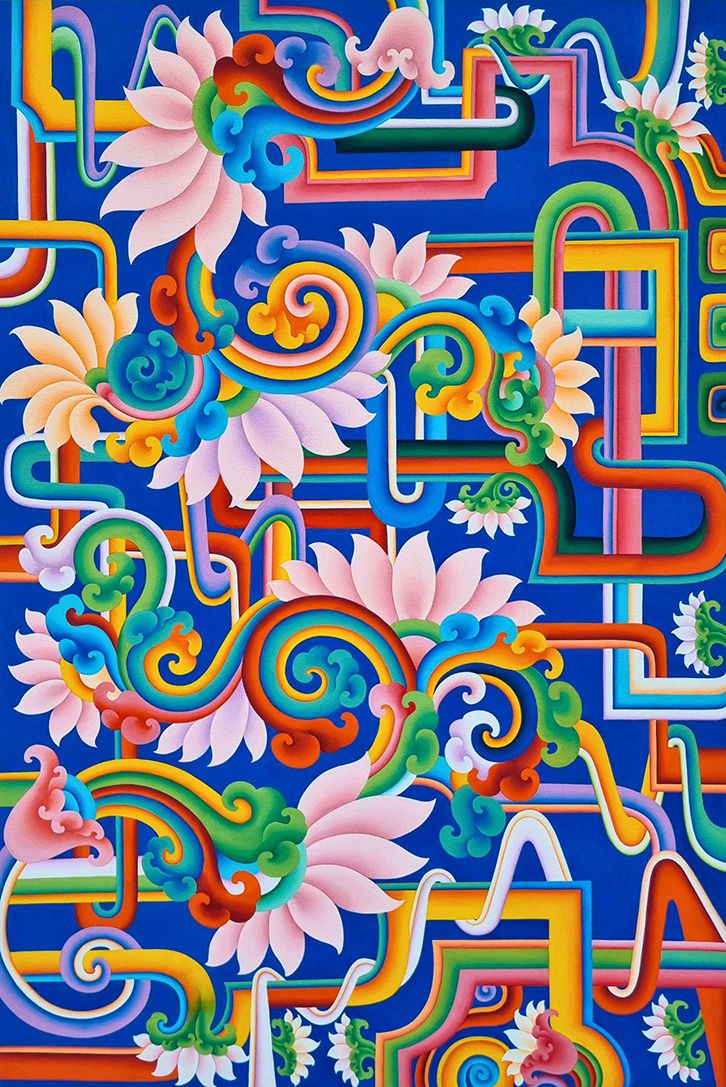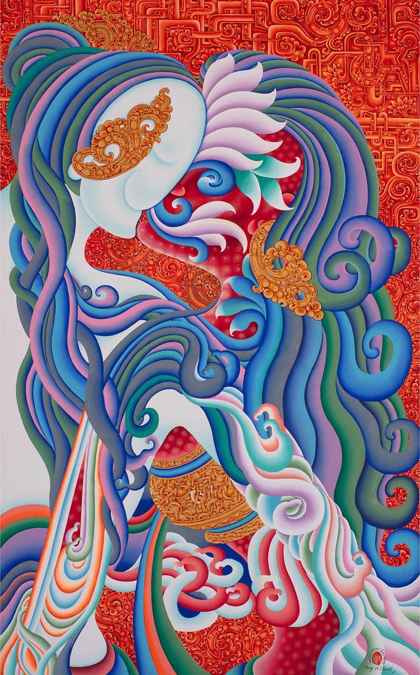 Medium: Japanese mineral pigment, French gouache, artist acrylic color, and 24K gold on canvas