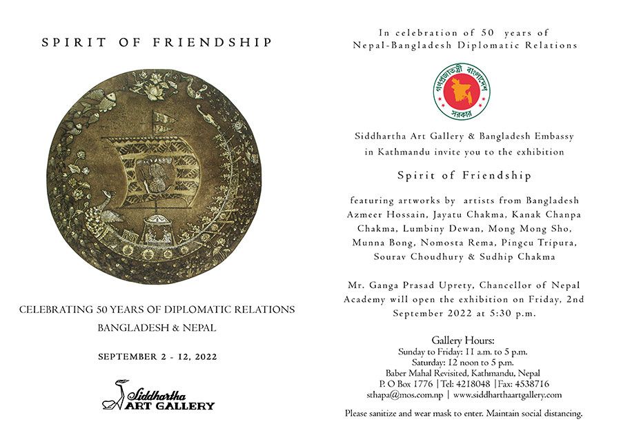 WHAT: SPIRIT OF FRIENDSHIP Mong Mong Sho, Lumbiny Dewan, Nomosta Rema, Sudhip Chakma, Jayatu Chakma, Pingcu Tripua, Munna Bong, Biswajit Goswami, Azmeer Hossain and Sourav Chaudhury.