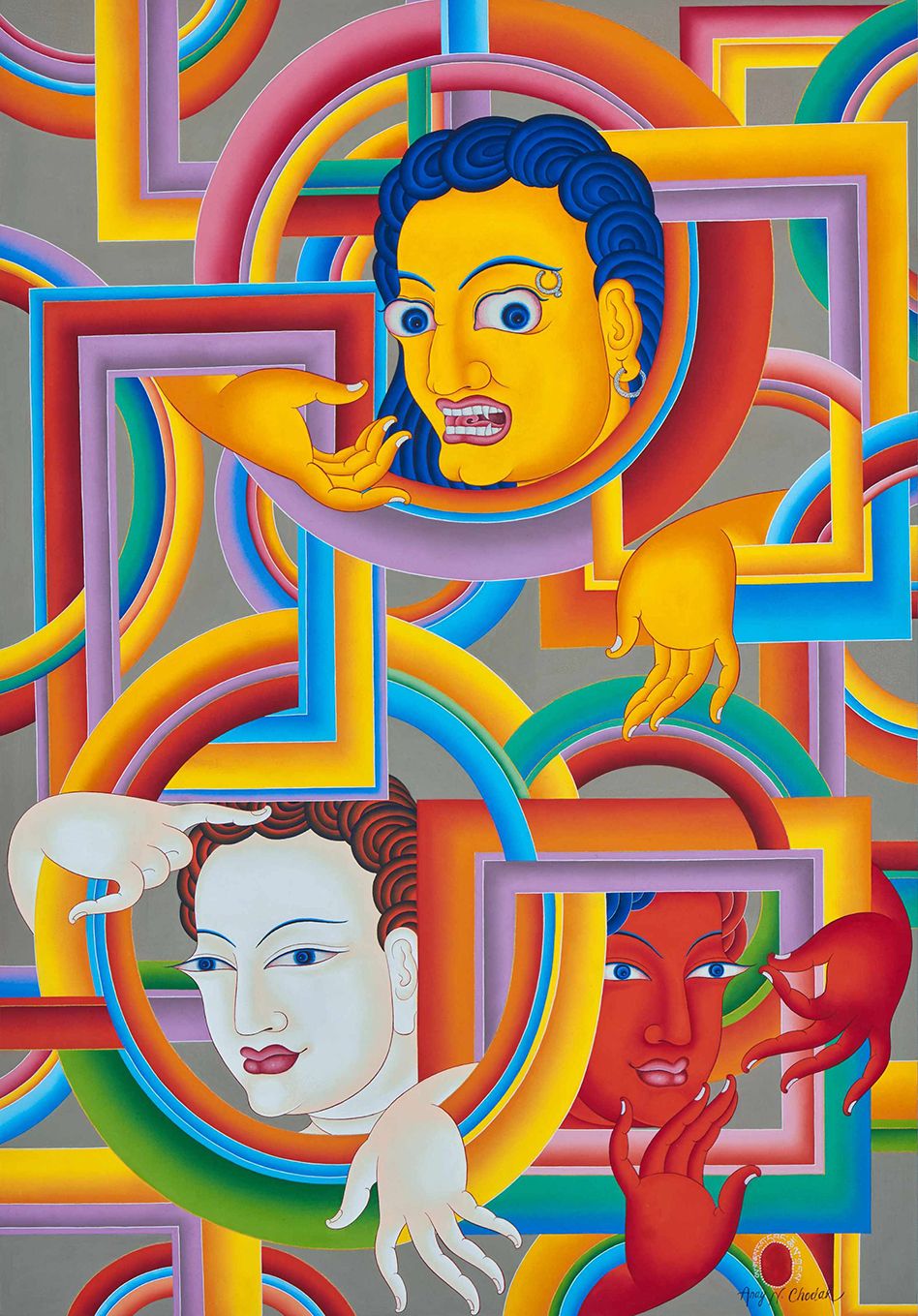 Medium: French gouache, oil, and artist acrylic color on canvas